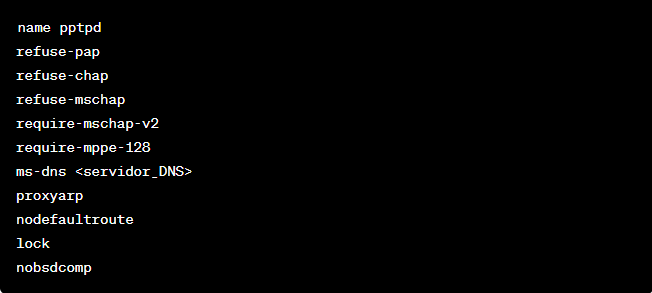 Paso 4: Configurar las opciones PPP Ahora, abre el archivo pptpd-options para editarlo: